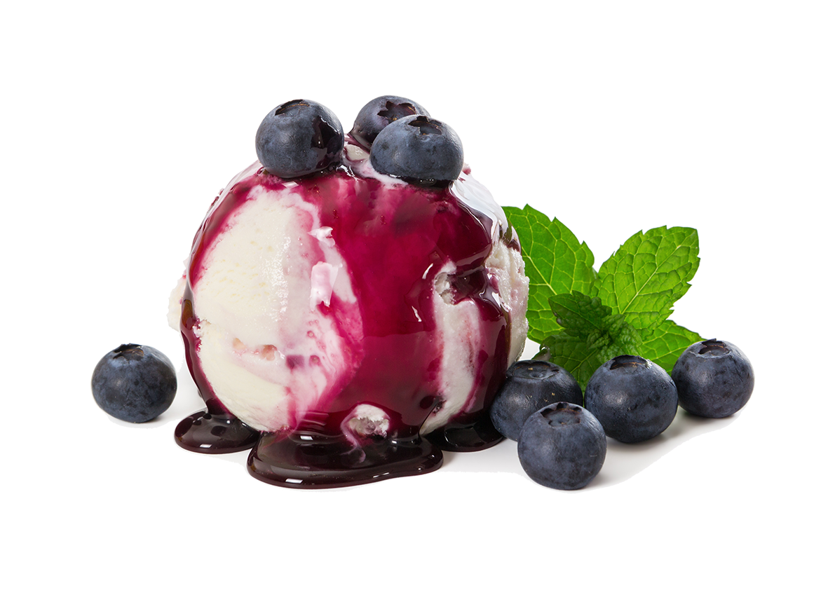 in Biskuit gebackenes Vanilleeis mit warmer Beerengrütze, Sahne & einer Kokos-Ummantelung